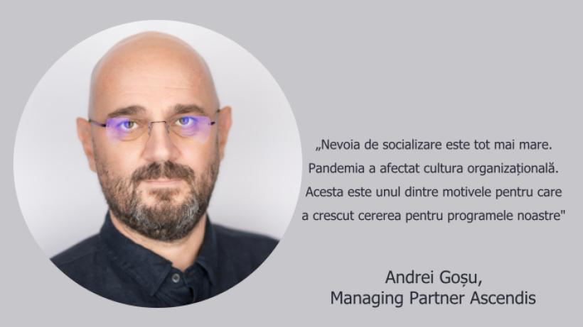 „Am fost surprinși să avem un prim semestru cu venituri record. La începutul anului, mai ales după declanșarea războiului din Ucraina, eram pesimiști. A crescut foarte mult cererea de programe de training, iar majoritatea (peste 70%) au fost organizate cu prezență fizică. Există o dorință tot mai mare a angajaților de a se reuni și de a socializa. Vin cu plăcere la întâlnirile cu colegii, fie că vorbim de cursuri sau team building-uri”, a spus Andrei Goșu, Managing Partner Ascendis.