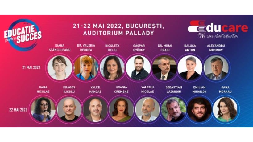 16 vorbitori de top în 2 zile de eveniment: pe 21-22 mai, la București Auditorium Pallady are loc EDUCare - Educație pentru succes