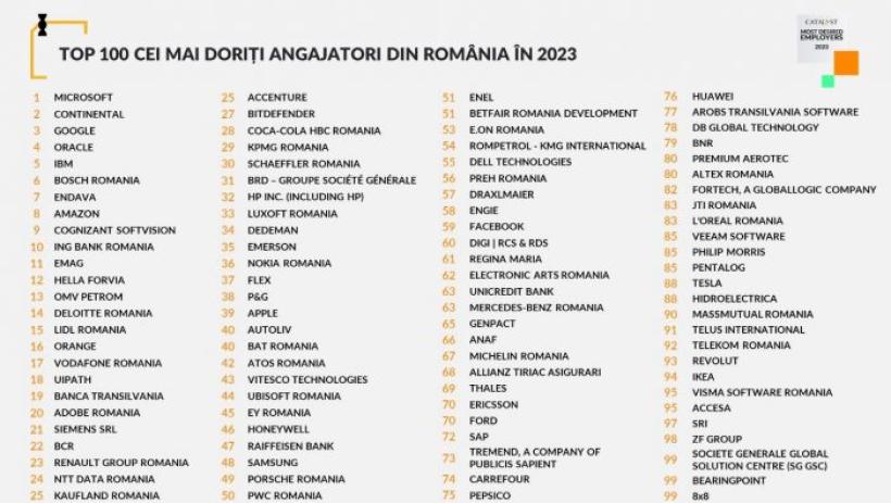 Desfășurat timp de 18 ani consecutiv, studiul Cei mai doriți angajatori este, la momentul actual, cel mai cuprinzător instrument care măsoară nivelul de atractivitate al angajatorilor la nivel național. Întrebarea „Care este topul primilor 5 angajatori pentru care îți dorești să lucrezi?” primește 14.446 de răspunsuri libere și neasistate. Participanții la studiu sunt, atât tineri la început de carieră, cât și profesioniști din România, din domeniile științe sociale, business, ingingerie și IT&C. Pe baza răspunsurilor oferite de ei, Catalyst Solutions lansează, în fiecare an, TOP 100 Cei mai doriți angajatori: