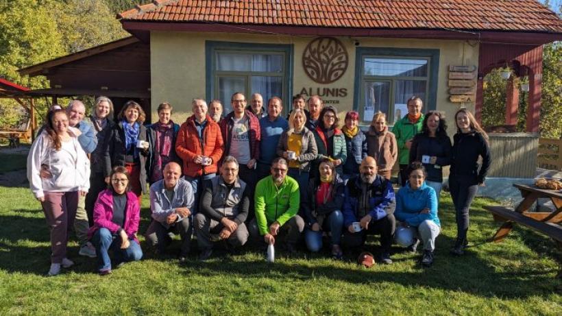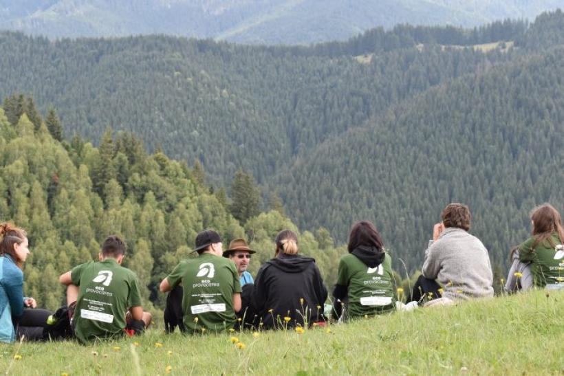 Foto: Anca Iosif - Rețeaua pentru Natură Urbană și Oltenia de sub Munte organizează printre altele și o școală de mediu pentru jurnaliști. Aici, Florin Stoican explica grupului din 2024 etapele și felurile exploatărilor forestiere.
