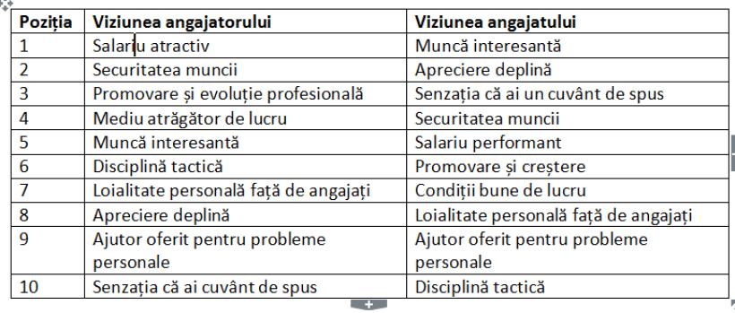 Putem analiza într-un mod similar și acest aspect. Ce crede angajatorul și care sunt părerile angajaților? Rezultatele sunt ordonate de la 1 la 10, luând în considerare lipsa unuia dintre următoarele elemente: