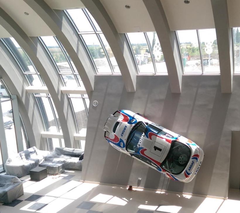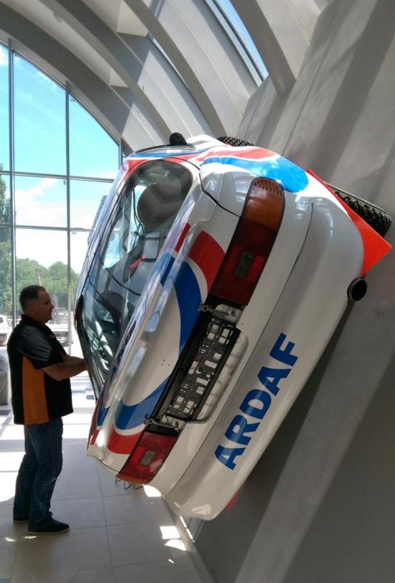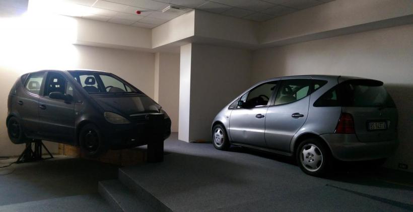 În fine, mașina de suflet a lui Titi Aur, suspendată în holul de intrare al Academiei