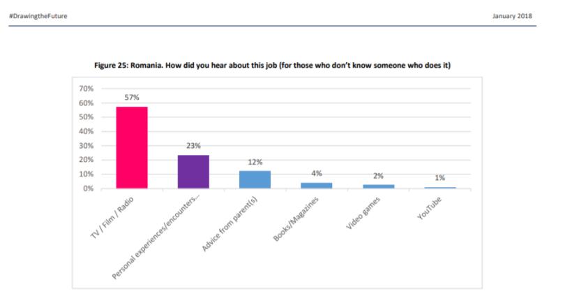 Îngrijorător, potrivit studiului, este că mai puțin de 1% dintre copii au auzit despre meseria respectivă de la persoane aflate în câmpul muncii, care să vină să le povestească în școală.