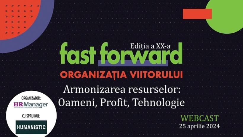Revista HR Manager organizează cu sprijinul Humanistic, în data de 25 Aprilie 2024, ediția a XX-a din seria de evenimente FAST FORWARD. ORGANIZAȚIA VIITORULUI, cu tema: ARMONIZAREA RESURSELOR: OAMENI, PROFIT, TEHNOLOGIE.
