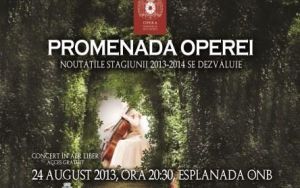 „Promenadei Operei”, concertul în aer liber care atrage anual mii de oameni, a ajuns la ediția a VII-a și va avea loc sâmbătă, 24 august, de la ora 20.30, pe esplanada Operei Naţionale Bucureşti (ONB), accesul la eveniment fiind gratuit.