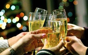 Toată lumea este adunată în jurul unei mari sticle de sampanie. După puțin timp se aude : POC! Dopul a zburat și acum toată lumea întinde paharul. La un moment dat se aude de lângă tine : speech, speech, speech. -
