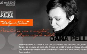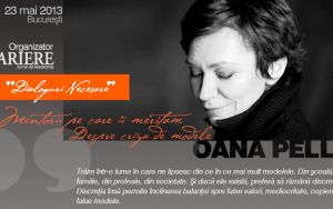 Mai sunt două (2) zile în care vă puteți asigura participarea la un dialog sincer și frumos cu Oana Pellea, despre modele și mentorii din viața noastră, în cadrul evenimentului „Dialoguri Necesare – Mentorii pe care-i merităm”, organizat de revista CARIERE, în data de 23 mai 2013, la JW Marriott Hotel, București.