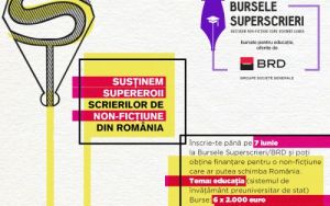 Fundația Friends for Friends lansează un nou program de burse jurnalistice: Bursele Superscrieri/BRD pe tema Educației, respectiv sistemul de învățământ preuniversitar de stat. Șase burse, în valoare de câte 2000 de euro fiecare, vor ajunge la autorii de non-ficțiune care doresc să realizeze materiale complexe pe această temă. -