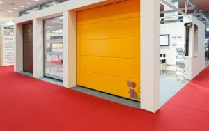 Producătorul de uşi de garaj MCA Grup a expus la Ambient Expo 2014 cea mai veselă uşă de garaj de fabricată până acum – o uşă secţională galbenă, cu un şoricel din inox aplicat manual. Există cerere pentru uşi de garaj personalizate, iar MCA şi-a propus să demonstreze astfel că poate oferi la comandă orice culoare din paletarul RAL, precum şi personalizare cu inserţii din inox.