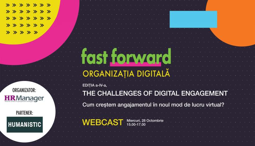În cea de-a patra ediție Fast Forward, Revista HR Manager, alături de Humanistic, aduce în atenție întrebarea care va decide traiectoria de acțiune din strategiile HR:“Cum creștem, controlăm și dezvoltăm angajamentul în noul mod de lucru virtual?’ În contextul muncii de acasă, al distanțării sociale, al turelor în care ședințele sunt doar operaționale, al “Zoom Fatigue”-ului, cum ne ținem angajații motivați și implicați?