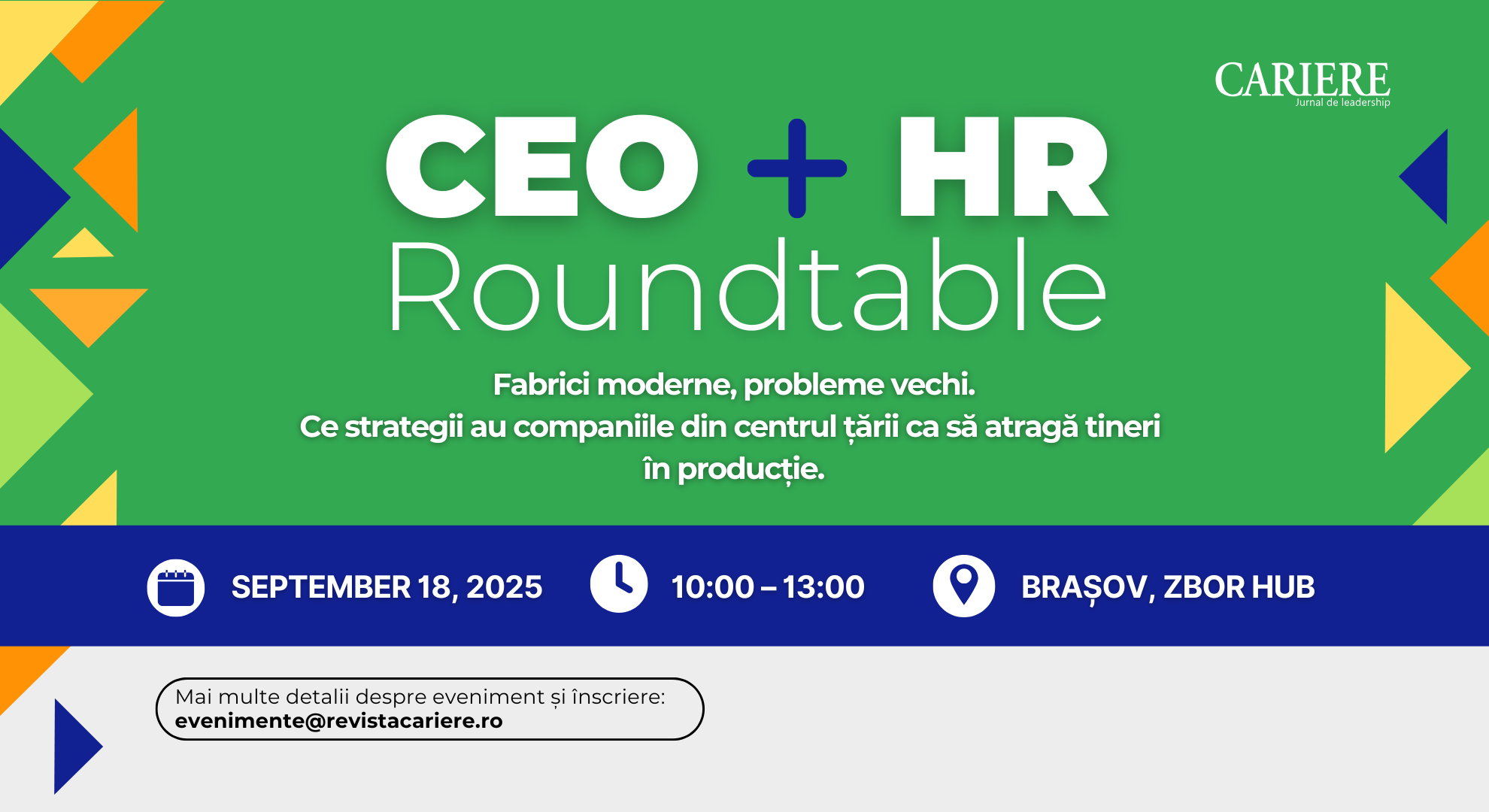 Evenimentul va reuni lideri din top management și specialiști în resurse umane din companii de producție din regiune, într-un dialog despre soluții reale pentru atragerea și retenția noii generații în industrie.