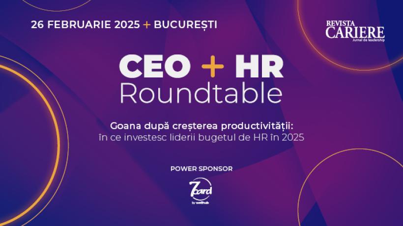 Aceasta va fi una dintre principalele teme care vor fi discutate în cadrul evenimentului Revistei CARIERE din 26 februarie – 𝗖𝗘𝗢+𝗛𝗥 𝗥𝗼𝘂𝗻𝗱𝘁𝗮𝗯𝗹𝗲 – „Goana după creșterea productivității: în ce investesc liderii bugetul de HR în 2025”.