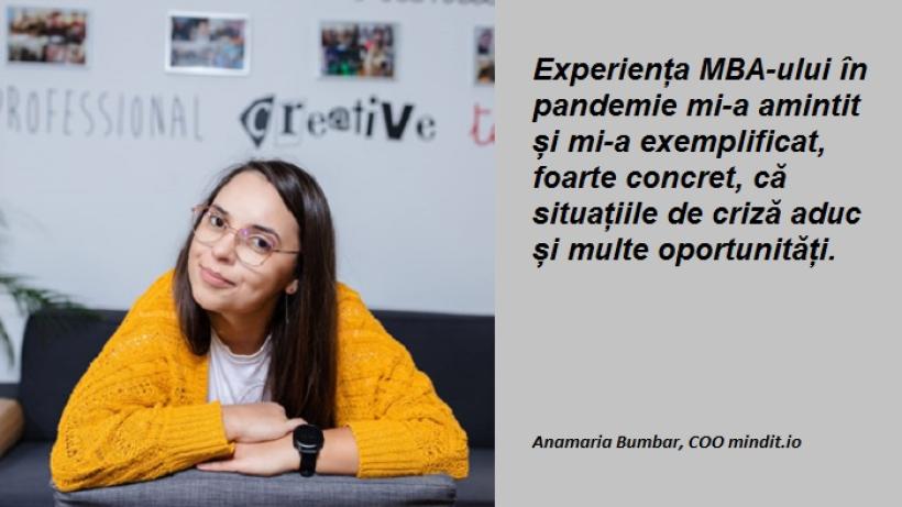 Experiența MBA-ului în pandemie mi-a amintit și mi-a exemplificat, foarte concret, că situațiile de criză aduc și multe oportunități și că succesul și creșterea sunt influențate cel mai mult de cât de repede ne adaptăm și de disciplina de a aduce în prim-plan toate posibilitățile de inovare și nu riscul de eșec.