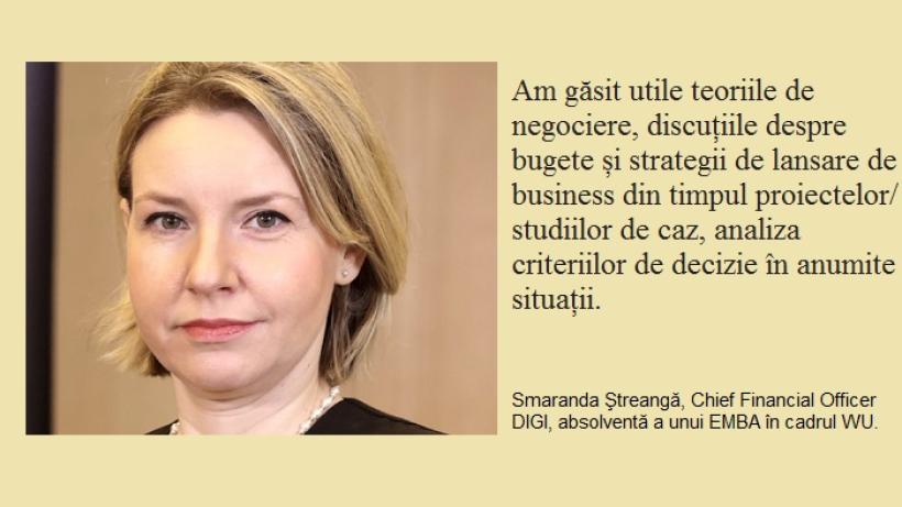Smaranda Ştreangă, Chief Financial Officer DIGI, este absolventă a unui EMBA în cadrul WU.