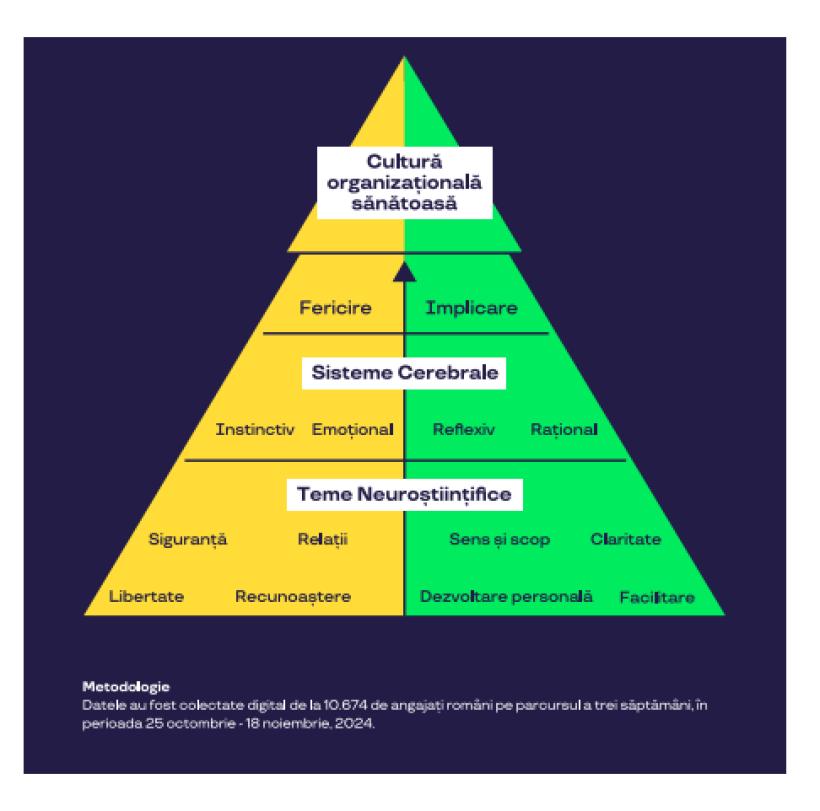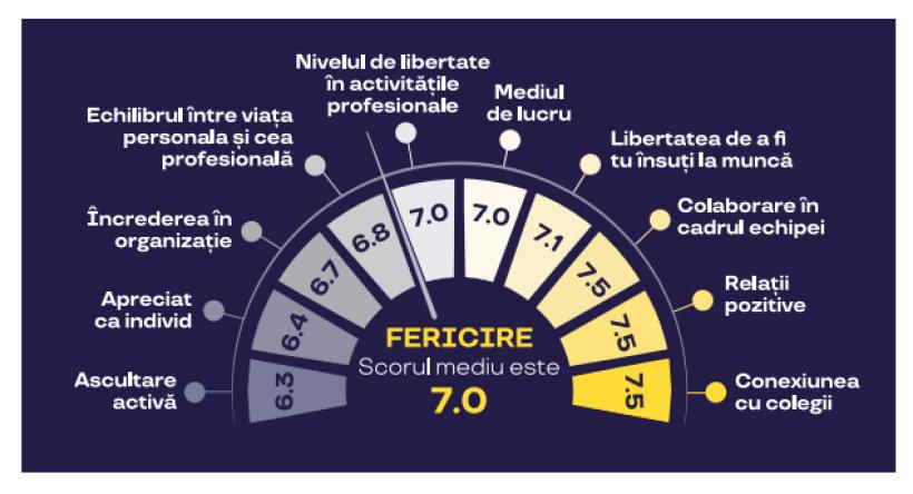 Un mediu în care relațiile cu colegii sunt armonioase, dar încrederea în lideri și organizație lasă de dorit, în care autonomia și flexibilitatea sunt prezente, echipele colaborează eficient, dar recunoașterea contribuțiilor individuale rămâne o provocare. Un loc unde echilibrul între viața profesională și cea personală este satisfăcător, dar sentimentul de a fi ascultat și apreciat la adevărata valoare este încă o aspirație.