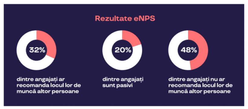 Iar asta de vede și într-un alt indicator al studiului: 1 din 2 angajați nu ar recomanda locul său de muncă altor persoane.