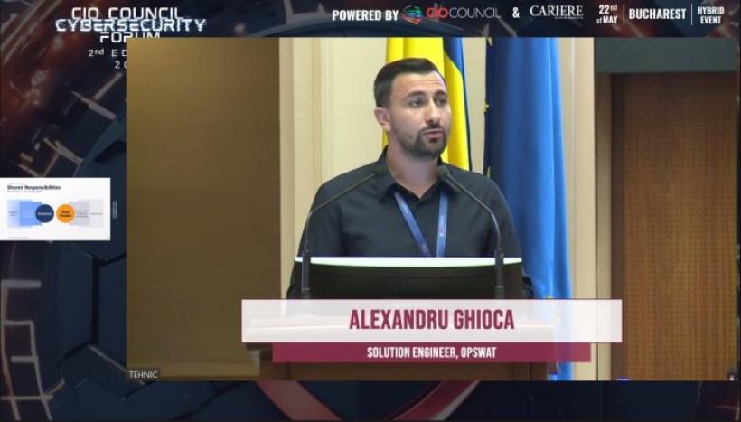 Explorând soluțiile OPSWAT Metadefender, Alexandru Ghioca, inginer de soluții la OPSWAT a întrebat audiența: “Știai că, în calitate de custode al datelor, responsabilitatea securizării acestora în cloud îți revine ție și nu furnizorului?”.