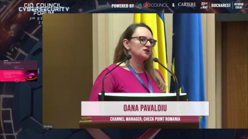 Oana Păvăloiu, Channel Manager, Check Point Romania a vorbit despre Securitatea cibernetică în era Inteligenței Artificiale - Cybersecurity in the era of AI. “Pe măsură ce inteligența artificială (IA) pătrunde tot mai mult în viețile noastre, este esențial să abordăm provocările de securitate cibernetică pe care le aduce. În acest peisaj dinamic, IA va fi utilizată atât de atacatori, cât și de apărători. Vom explora oportunitățile de a valorifica IA pentru a îmbunătăți afacerea și apărările sale, recunoscând în același timp riscurile potențiale”.