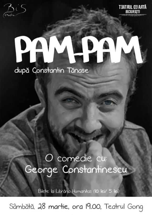 „Este felul nostru de a-l omagia pe Constantin Tănase, un simbol al comediei românești. Spectacolul PAM-PAM este un spectacol al unei companii reprezentative pentru spațiul independent românesc, Teatrul de Artă București. Totodată, atragem atenția asupra faptului că se apropie ediția aniversară, cu numărul cinci, a festivalului maraton «25 De Ore De Teatru Non Stop», care are loc anual, la Sibiu, sub mottoul «RESPIRĂ. TEATRU». Festivalul împinge limitele experienței teatrale, atât pentru actor, cât și pentru spectator. Vă invităm și vă provocăm să ne fiți alături în acest demers teatral nemaivăzut”, a declarat George Constantinescu.