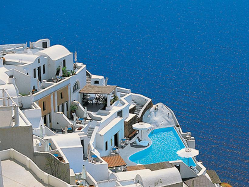 Aflat intr-o locatie uimitoare, la 100 de metri deasupra marii, in satul pitoresc Oia, hotelul se bucura de o arhitectura care se potriveste perfect cu peisajul acestei zone: scari, poduri, vile cochete si multe piscine.