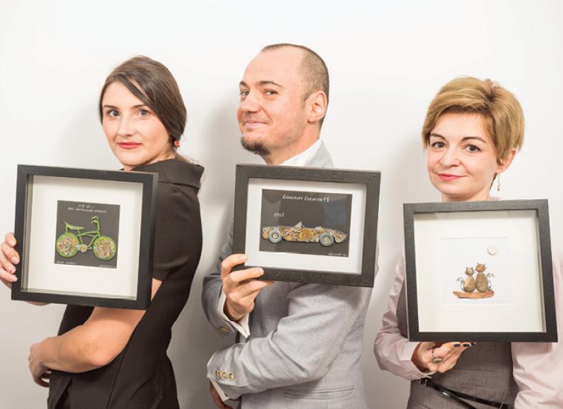 Bogdan Dragomir povestește că nu se aștepta să ajungă să lucreze într-un mediu creativ. „Venim toți trei din medii care nu au legătură cu creația, partea artistică s-a trezit în noi ulterior. Eu am trecut de la brokeraj la producția de butoni, tablouri, machete. Am făcut inclusiv două cursuri de bijuterie contemporană, sunt și acreditat și ne dorim ca a doua direcție a afacerii pe termen mediu și lung să fie bijuteria contemporană din metale prețioase: aur, argint, platină. Înseamnă producție de la zero a bijuteriilor, iar în cazul acesta avem nevoie de un capital mai mare pentru a lansa linia din materiale prețioase”.