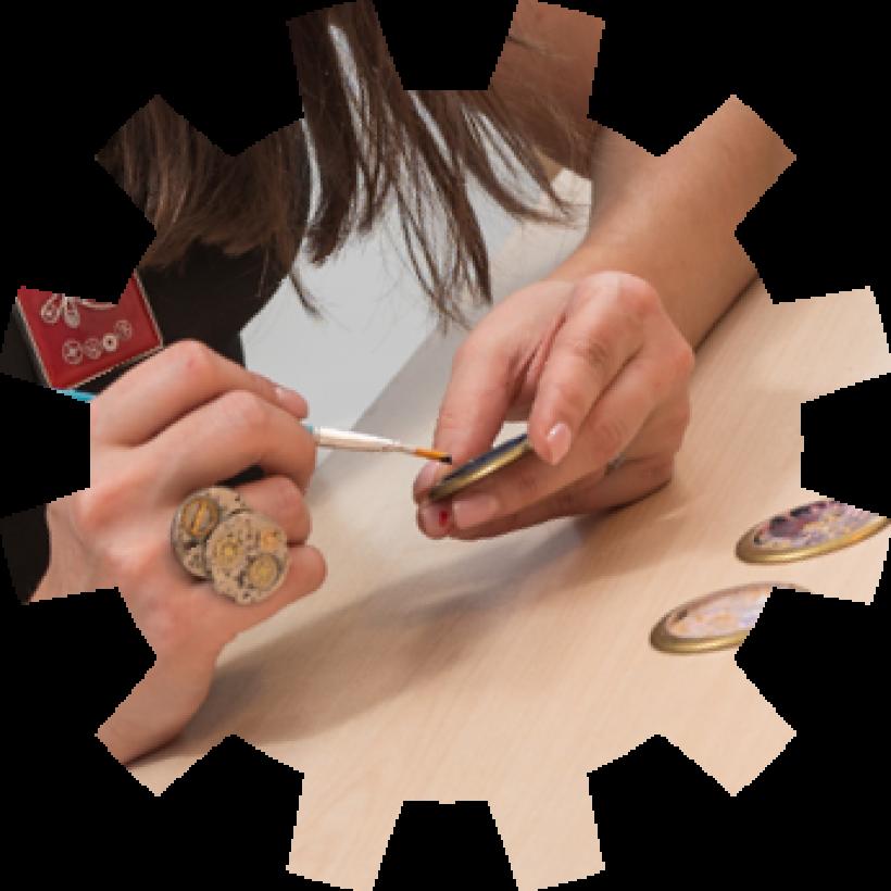Încearcă să fie creativi, să recicleze elemente pe care altcineva nu le-ar folosi și ar fi aruncate. Fac și tablouri din pietre de râu, din plăcile de bază de la calculatoare aruncate decupează bucăți și fac butoni, din creioane colorate confecționează broșe... Alexandra Dragomir spune că inspirația e o chestiune de moment, influențată de starea emoțională, adică sunt și zile când nu îi ies. Idei mai vin și din partea clienților. De exemplu, la broșe, a început cu unele simple, iar acum are și 30 de modele. Îi apucă și ora unu noaptea în atelier, alteori chiar dimineața, dar nu simt nevoia disperată de a avea un concediu, așa cum se întâmpla când erau angajați. „Nu aș compara ceea ce facem acum cu un job full-time pentru că era un job și atât. Aici trebuie să facem niște sacrificii de care suntem conștienți, pentru viitor. Noi vrem să creștem și la un moment dat procesele să fie atât de bine puse la punct, încât să ne putem lua o lună concediu și treaba să meargă”, spune Iolanda.
