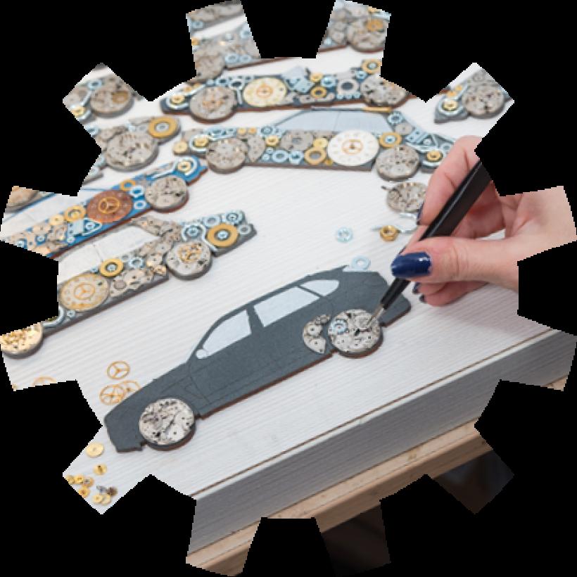 Butonii se fac din mecanisme de ceas recondiționate. „Partea de recondiționare o fac eu în atelier. Mecanismele au o vechime de 30-40 de ani. Am început cu ceasuri luate de pe la prieteni și din târguri, de la anticari. De vreun an și ceva importăm aceste mecanisme pentru că am ajuns să folosim zeci de mii de mecanisme și nu le-am găsit într-un târg. Eu sunt pasionat de ceasuri vechi. Unele au chiar rubinele originale și, acolo unde sunt lipsă, practic le adăugăm. Bijuteriile de damă sunt 100% concepția soției mele”.