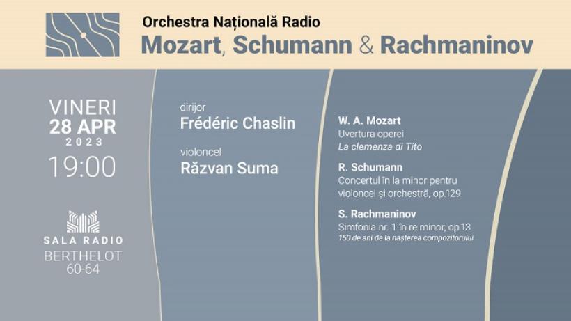 Concertul de la Sala Radio va fi și un prilej de a-l revedea pe violoncelistul RĂZVAN SUMA, unul dintre cei mai activi muzicieni români, solist al Orchestrelor și Corurilor Radio, fondator al Ansamblului PlaCello, director artistic al primului festival de violoncele din România - CellEAST - și al proiectului ICon Arts Transilvania. Acesta va interpreta SCHUMANN: Concertul în la minor pentru violoncel și orchestră. Ca și simfonia lui Rachmaninov, lucrarea a avut o poveste neașteptată: concepută în doar 2 săptămâni, nu a fost niciodată interpretată în timpul vieții compozitorului, care primise câteva critici negative pe partitura sa. Dar astăzi concertul este considerat unul dintre cele 3 mari concerte romantice pentru violoncel, alături de cele semnate de Dvořák și Elgar.