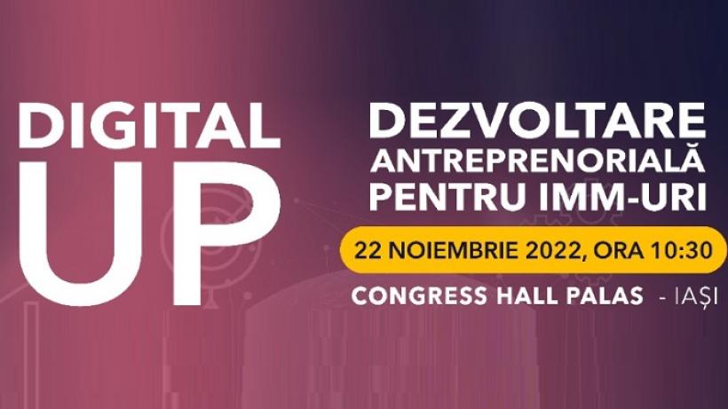 Cea de-a treia dezbatere din cadrul seriei de conferinţe din proiectul „Digital UP: Dezvoltare Antreprenorială pentru IMM-uri” se va desfăşura la Iaşi. Evenimentul va avea loc marţi, 22 noiembrie, începând cu ora 10:30 la Congress Hall Palas Iași şi este ultima conferinţă din acest an. Vom dezbate beneficiile digitalizării, progresele tehnologice, procesele care pot fi automatizate în afaceri şi vom vorbi despre nevoia de digitalizare într-un business sau într-o organizaţie.