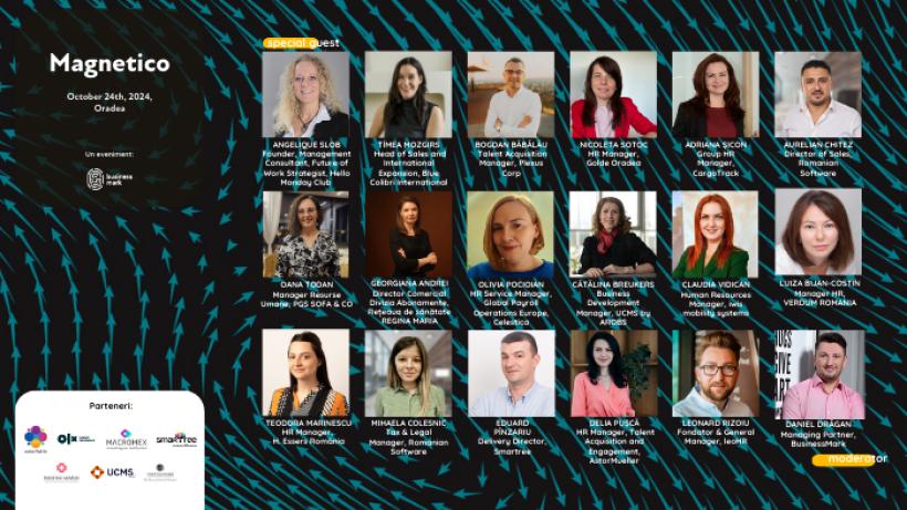 Pe 24 octombrie 2024, BusinessMark invită profesioniștii de HR și Employer Branding din Oradea la o nouă ediție a conferinței „MAGNETICO. How to attract and retain talents improving employer branding and creating meaningful HR practices”.
