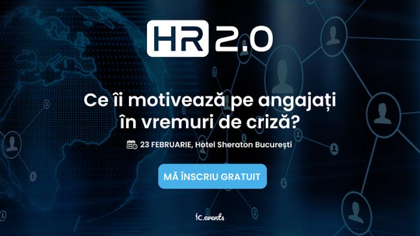 Vino și tu să te revezi față în față cu cei mai importanți angajatori din România, în cadrul celei de-a 12- a ediții a evenimentului „HR 2.0”, pe 23 februarie, la Hotel Sheraton, în Sala Platinum (Calea Dorobanților 5-7), începând cu ora 10:00. Evenimentele noastre se desfășoară și online în platforma de evenimente virtuale IC Events. Dacă alegi participarea în sala de eveniment ai acces și la platforma online. Participarea este gratuită!