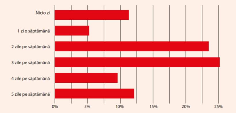 * Numai 13% dintre respondenți preferă să se prezinte la birou în fiecare zi, în timp ce 14% își doresc un program de lucru integral la distanță. În schimb, marea majoritate a respondenților dorește să aibă opțiunea de a lucra la distanță cel puțin o parte din timp pentru tot restul carierei.