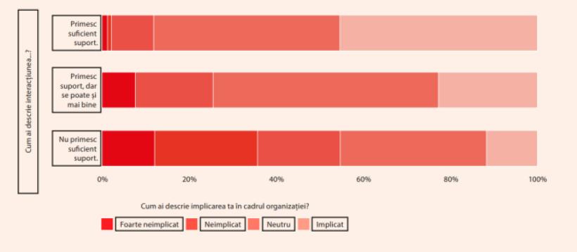 * Persoanele care au simțit cel mai mult că sunt susținute de managerii lor au declarat și cel mai mare grad de implicare în cadrul organizației în ansamblu.