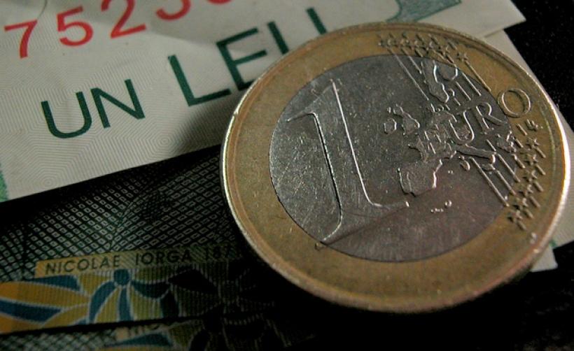Cursul pentru euro a coborat luni cu 5,8 bani comparativ cu 4,6118 lei/euro vineri, iar referința pentru dolar a scăzut cu 4,89 bani, de la 3,7575 lei/dolar.