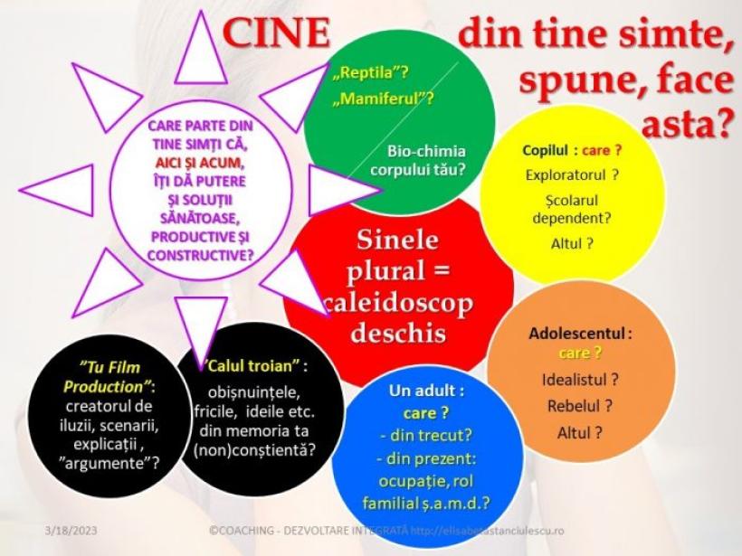 Mulți dintre clienții mei spun că imaginea de mai jos, pe care am creat-o pentru ei, i-a ajutat să se înțeleagă mai bine, să înțeleagă de ce fac sau nu fac una sau alta și cum pot proceda ca să reușească în proiectele lor; din nou, nu e aici loc pentru toate explicațiile pe care le ofer în timpul programelor mele, dar sigur poți lua câteva idei utile: