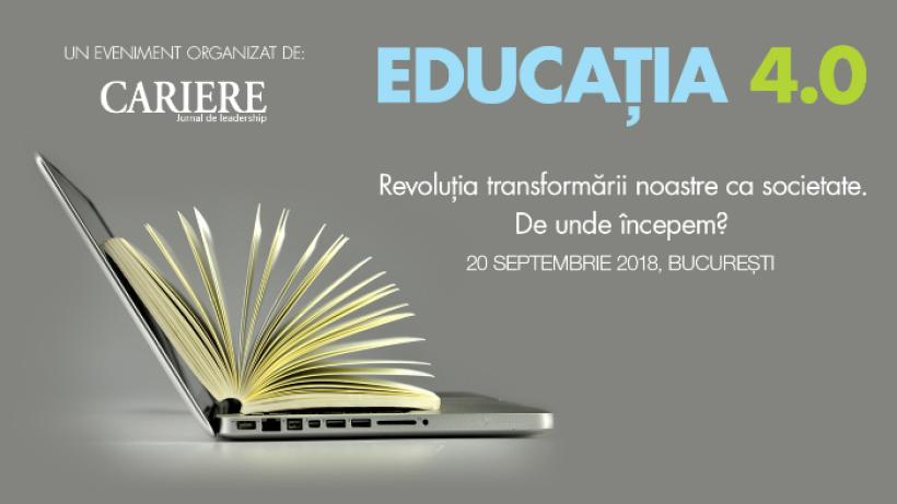 Revista CARIERE organizează un eveniment special despre educaţia viitorului în era disruptivă a inteligenţei artificiale şi a transformărilor radicale, "EDUCAŢIA 4.0 - Revoluţia transformării noastre ca societate. De unde începem?", pe 20 septembrie 2018, în București.