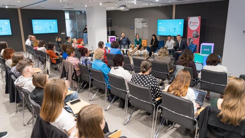 Camelia Crișan, CEO al Fundației Progress, și Claudiu Gherman, Managerul de proiect al SBB din cadrul Fundației Progress, au prezentat impactul proiectului în urma căruia copiii și adulții din comunitățile rurale și mic urbane au învățat noțiuni de educație financiară.