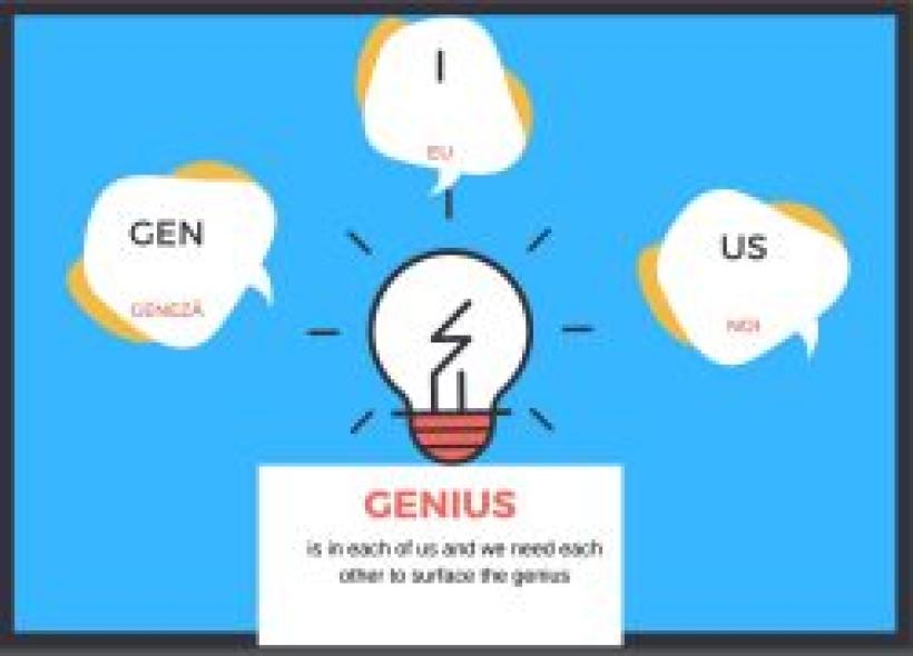 Iar ideea aceasta stă chiar în construcția cuvântului GENIUS din engleză, care s-ar interpreta astfel: geniul este în fiecare dintre noi și avem nevoie unii de alții pentru a aduce geniul la suprafață.