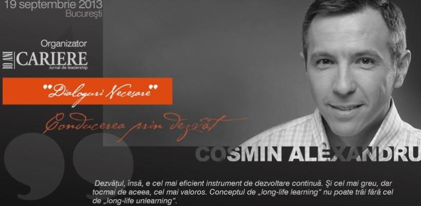 CARIERE și Cosmin Alexandru vă provoacă la un exercițiu concret despre puterea dezvățului, în cadrul conferinței „Dialoguri Necesare - Conducerea prin dezvăț”, din 19 septembrie 2013.