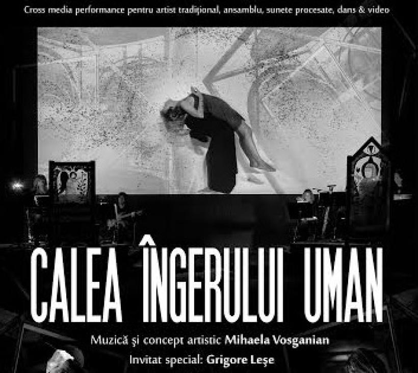 Calea Îngerului Uman este un spectacol complex, un cross-media performance de texte tradiționale românești și mantre, incluzând momente de ilustraţie video, dans sau sunete procesate, pe care Mihaela Vosganian și l-a imaginat pentru un grup experimental de instrumentiști, actori și dansatori.