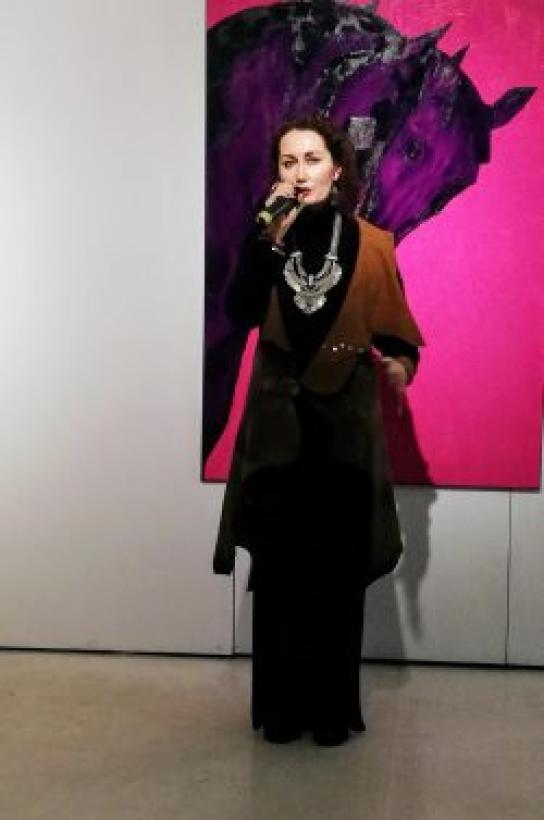 Leyla Mahat, la vernisajul expoziției „Here I Am” - Galateca, București, 11 martie.