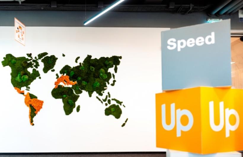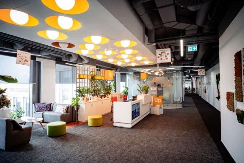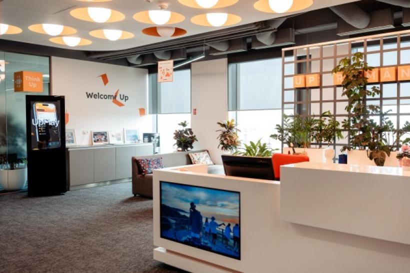 În cadrul Up România lucrează 170 de angajați, iar mutarea celor din București în sediul actual a avut loc în septembrie 2021. Designul a fost gândit pentru a reflecta valorile brandului: deschidere, inovație și conectivitate.