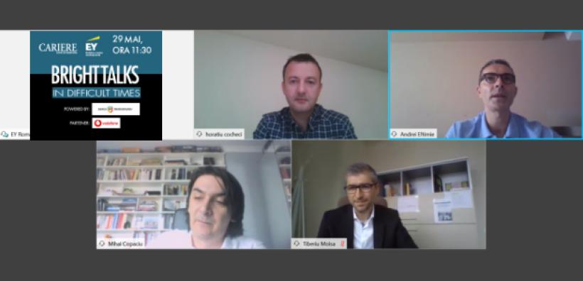 „Ce va fi după COVID-19? Macro-realitatea crizei din România” a fost tema ultimei ediții din seria întâi a webinarului “Bright Talks in Difficult Times”, organizat de Revista CARIERE împreună cu EY România. Evenimentul va fi reluat în curând, cu o a doua serie, dar într-un format ușor modificat. Vom reveni cu amănunte.