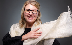 Anke Domaske, în vârstă de 28 de ani, a dezvoltat un material numit Qmilch făcut din proteinele din lapte şi reprezintă prima fibră artificială produsă în întregime fără chimicale.