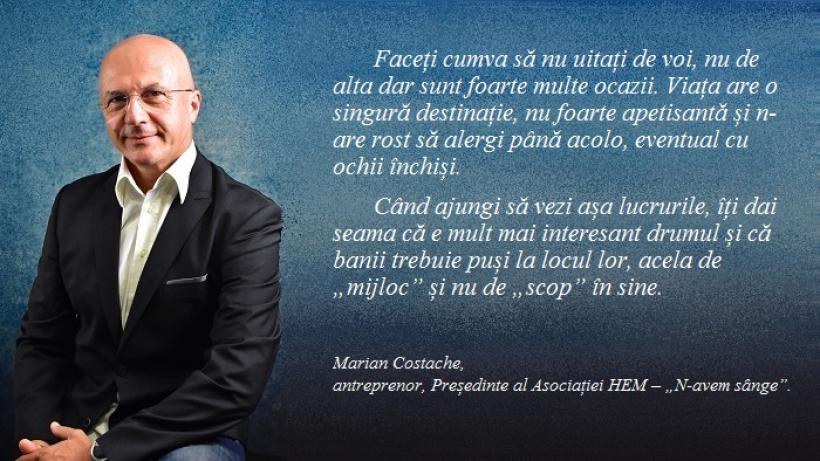 În viață nu trebuie să ne întrebăm prea des care este scopul nostru pe Pământ, ci să acționăm ca atare. Inițiativele unora dintre noi pot salva vieți. De fapt, acțiunile întreprinse de unii dintre noi chiar salvează vieți. Dar cu ce preț? De fapt... există un preț plătit pentru faptele bune? Despre echilibru, viață, scop, antreprenoriat, am vorbit cu Marian Costache, tată, soț și antreprenor, într-un material marca Revista CARIERE, pentru secțiunea Work Life Balance.