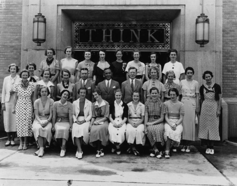 In cadrul unei sedinte a echipelor de vanzari de la NCR, Thomas Watson Sr. le-a spus angajatilor sai “dumneavoastra trebuie sa GANDITI!”. In acel moment, a scris sloganul “THINK” pe un flip-board si i-a spus asistentului sau sa puna acest cuvant pe ecusoane si sa le distribuie angajatilor. Atunci cand Watson s-a alaturat echipei Computer-Tabulating-Recording Company in 1914, a adus cu el si sloganul “THINK”. In anii 1920, C-T-R a devenit IBM, expresia “THINK” era foarte utilizata iar sloganul a devenit sinonim cu compania datorita expunerii de care beneficia. Folosind sloganul “THINK”, Watson a creat o cultura de cercetatori independenti si vanzatori pasionati ce au permis crearea unei forte de munca dispersata.