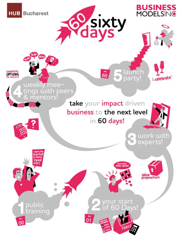 Proiectul își propune ca timp de 60 de zile să ajute 25 de antreprenori să își dezvolte afacerile sociale indiferent că se află la stadiul de idee, s-au lansat deja pe piață ori își doresc extinderea operațiunilor, iar la final, în cadrul unei sesiuni de pitching, să întâlnească potențiali investitori.