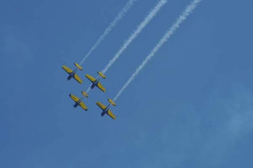 Acrobaţii cu planorul, lansare de paraşutişti din lotul naţional, evoluţia unui bombardier B 25 - Flying Bulls, exerciţiu de Poliţie Aeriană, zbor cu Boeing 737 al Tarom, formaţie de două YAK 52, MIG 21, IAR 99 - Forţele Aeriene Române, au fost atracţii ale primei zile a show-ului aerian.