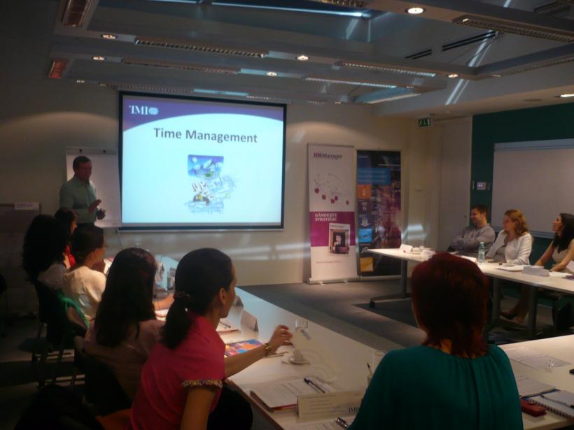 Trainingul, susținut de Ciprian Teleman, membru al TMI din 2006, s-a axat pe teme precum modul organizaţional, gestionarea şi evaluarea activităţilor, planificarea şi prioritizarea activităţilor importante din companii.