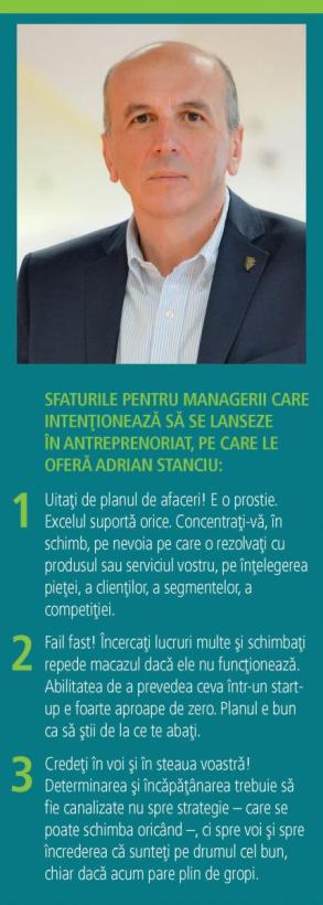 Sfaturile pentru managerii care intenționează să se lanseze în antreprenoriat, pe care le oferă Adrian Stanciu: